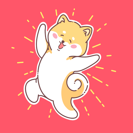 グリーティングカードハッピーニューイヤー おしゃれは犬のベクターイラスト かわいい動物です 星の周り 招待状 服のプリント パターンやバナーのために使用します 友人と新年のパーティーのためのステッカーのセット の写真素材 画像素材 Image