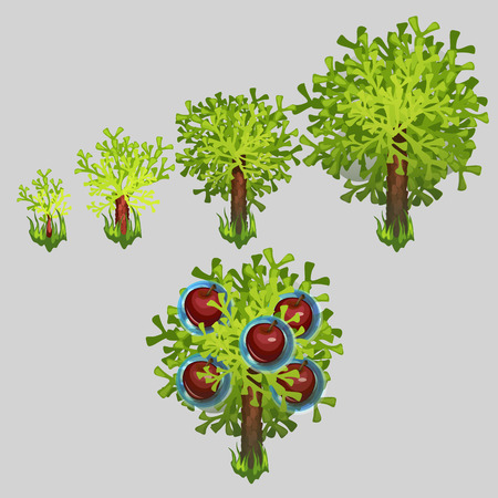 レモンの木の育成と植林します 白地に柑橘類の木の成長段階のベクトル イラストのイラスト素材 ベクタ Image
